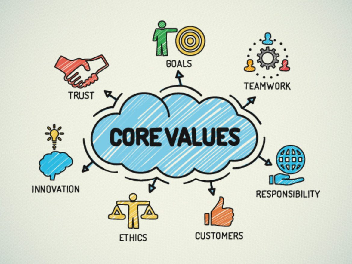 ارزش های سازمانی، اصول و چارچوبهایی هستند که تمام سازمان به آنها وفادار است و فراتر از هر قانون و قاعدهای قرار میگیرند. تمام استراتژیها، تاکتیکها، برنامهها و اقدامها، باید با رعایت این ارزش های کلیدی تنظیم و اجرا شوند و هیچکس، از هیأت مدیره و مدیرعامل تا پایینترین کارمند شرکت، حق ندارد حتی یک