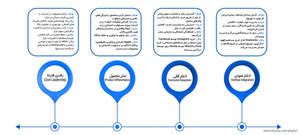 در نهایت، پیادهسازی موفق این استراتژیهای شرکتی و توجه به مراحل چرخه عمر سازمان به شما امکان میدهد مسیر رشد و توسعه کسبوکار خود را بهصورت منظم و کارآمد مدیریت کنید و از رویکردهای استراتژیک سازمانی برای بهبود عملکرد بهره ببرید.